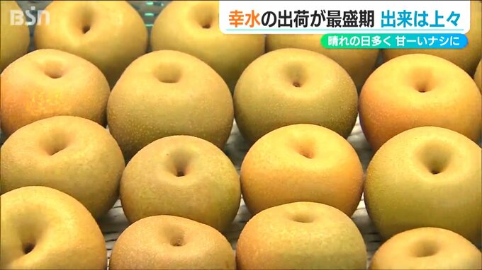 新潟県 加茂市でナシの出荷が本格化しています。晴れた日が長く続いた今年は糖度が高く出来は上々のようです。早くも秋の味覚が登場。ナシの『幸水』です。【記者リポート】「甘い!かなりみずみずしいです。おい…