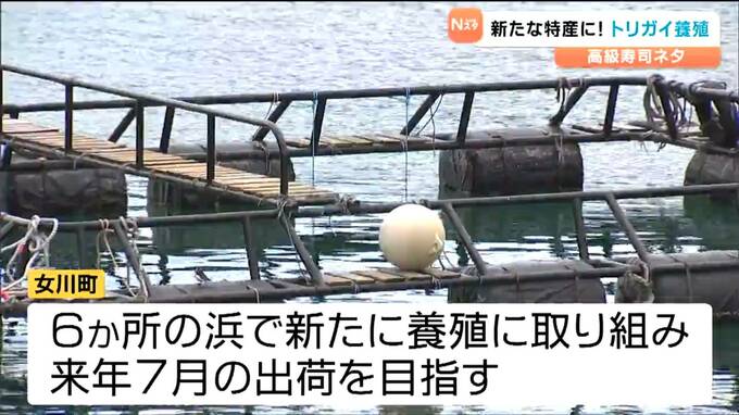 トリガイは、高級な寿司ネタとして需要が高く、県内では七ヶ浜町でも養殖されています。女川町では、6か所の浜で新たに養殖に取り組み、2026年7月の出荷を目指します。