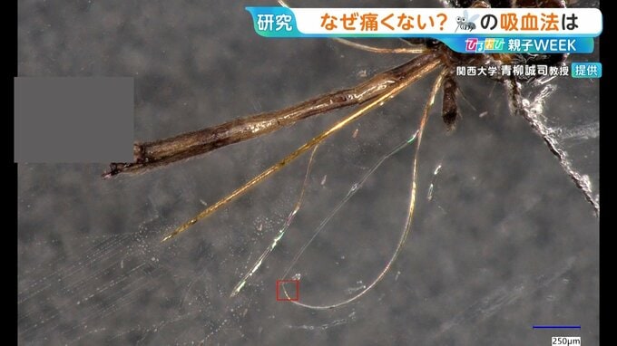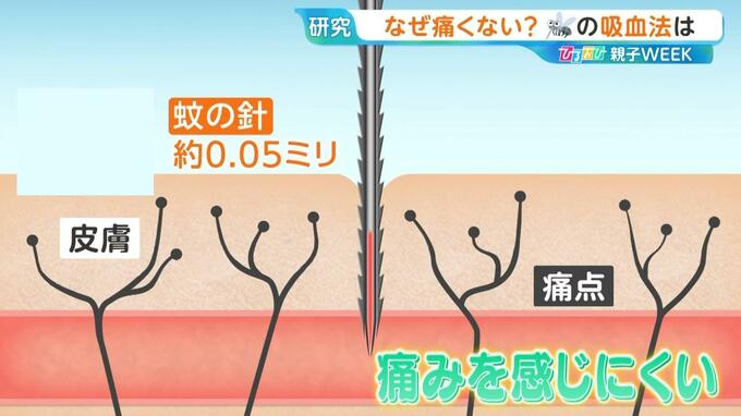 「細くすれば痛くなくなるんですけれども、折れ曲がってしまって刺さらない。でも、蚊は柔軟で細い針を、刺し方の工夫をして入れているんですね。」