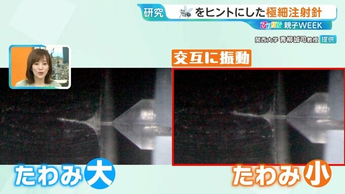 関西大学システム理工学部のロボット・マイクロシステム研究室では、蚊の生態を模倣して痛みの少ない注射針を作っています。