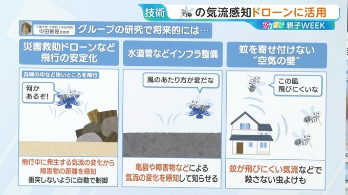 この「蚊の気流感知」は、既にドローンに応用されています。