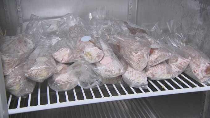 焼いたサツマイモの粗熱をとって-26度の冷凍庫で8時間ほど寝かせると完成します。