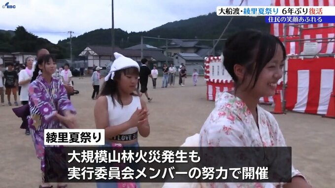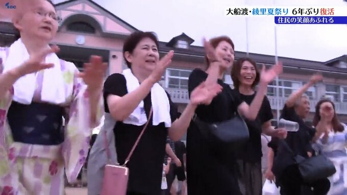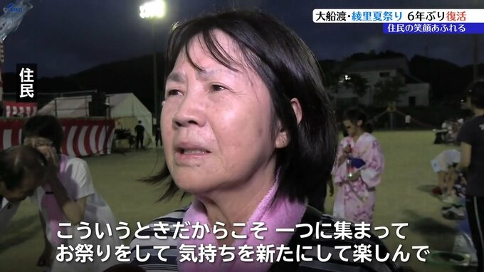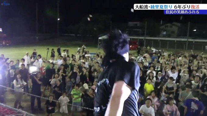 大規模山林火災の被害を受けた岩手県大船渡市三陸町綾里地区で14日、綾里夏祭りが6年ぶりに復活し、会場は住民の笑顔であふれました。