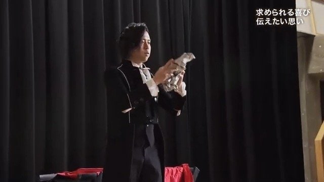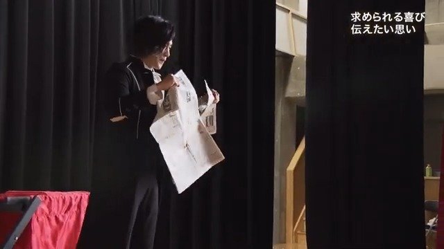 ステージ上で最後に披露されたのは、新聞を使ったマジック。手元の新聞紙を半分に、さらに半分に破っていきます【画像㉚㉛】。