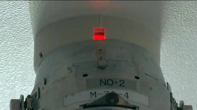 火災報知器の点検では疑似的に煙や熱を実際に出す専用の道具を使い、きちんと作動するかを一つひとつ確認します。