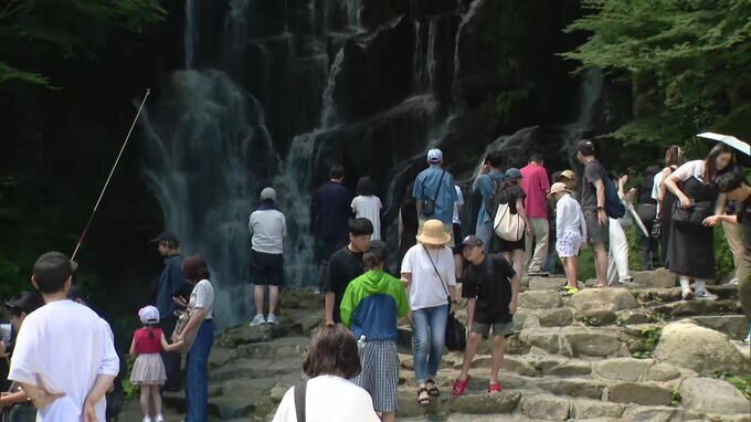 県内有数の涼スポット、糸島市の白糸の滝です。
