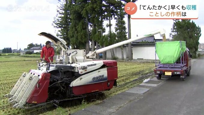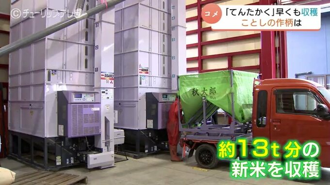 盛安さんは、15日までにおよそ13トン分の「てんたかく」の新米を収獲。例年以上の猛暑や今月7日に発生した大雨などで収量や品質への影響を心配していました。