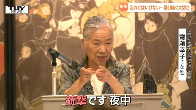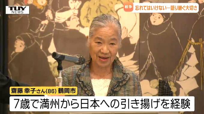 齋藤さんは7歳の時に満州から日本への引き揚げを経験し、家族とともに旧ソ連の侵攻から逃げる際2人の妹と弟を亡くしました。