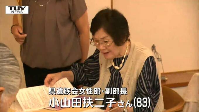 県遺族会女性部副部長の小山田扶二子さんです。太平洋戦争のさなかに満州で生まれ、2歳の時に戦争で父を亡くしました。