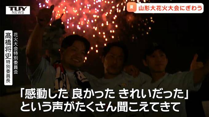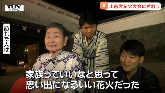 山形の夜空に浮かぶ大輪の花の美しさに、訪れた人たちは時間を忘れて酔いしれているようでした。