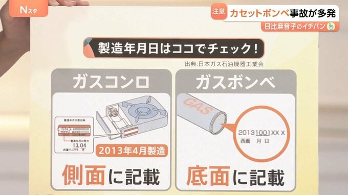 購入したガスコンロやボンベの製造年月日をチェックするポイントを紹介します。