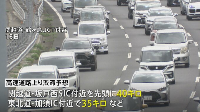 Uターンラッシュがきょうから始まります。高速道路はきょう上りで渋滞のピークとなり、▼関越道・坂戸西スマートインター付近を先頭に40キロ、▼東北道・加須インター付近で35キロ、▼中央道・小仏トンネル付近で3…