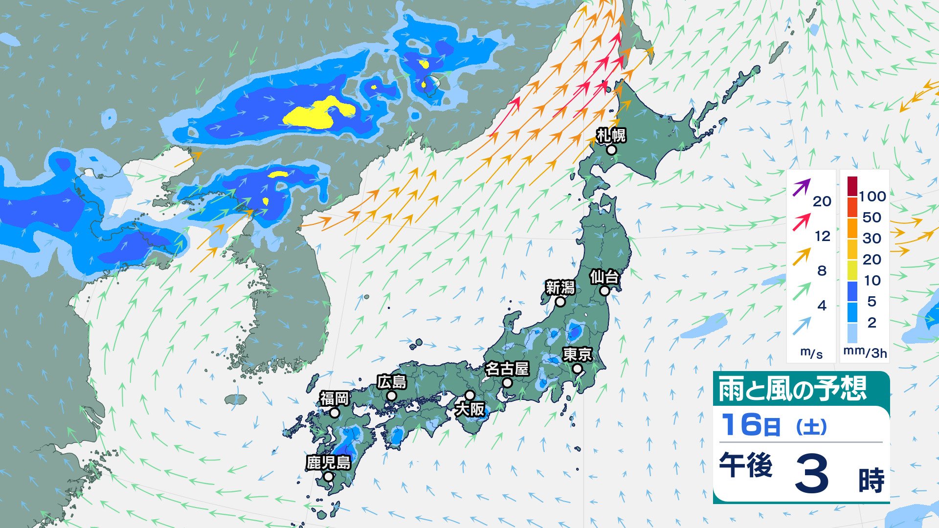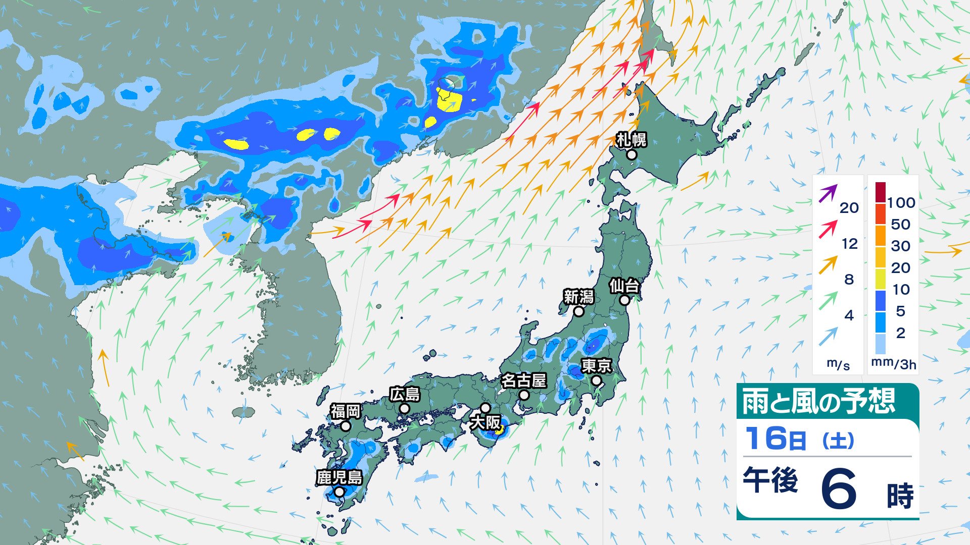 関東甲信で16日昼過ぎから大雨に警戒 土砂災害や河川の増水、落雷・突風・降雹に十分な注意【雨と風のシミュレーション】 チューリップテレビ 2025年8月16日(土) 08:55 国内 天気 16日(土)の雨風シミュレーション