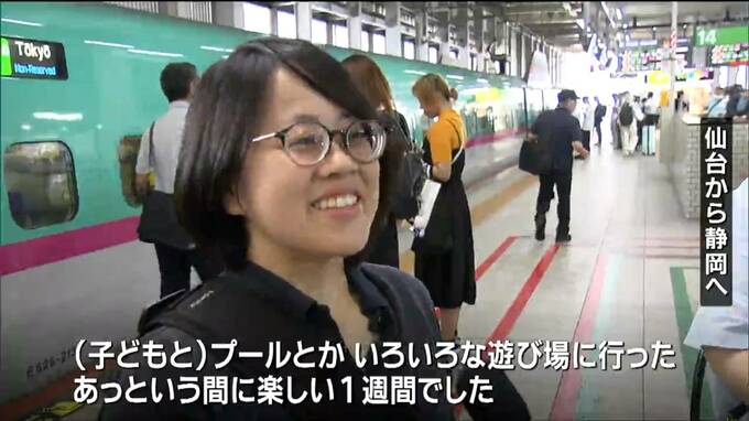 JR仙台駅の新幹線ホームでは大きな荷物を持った家族連れなどの姿が多く見られました。