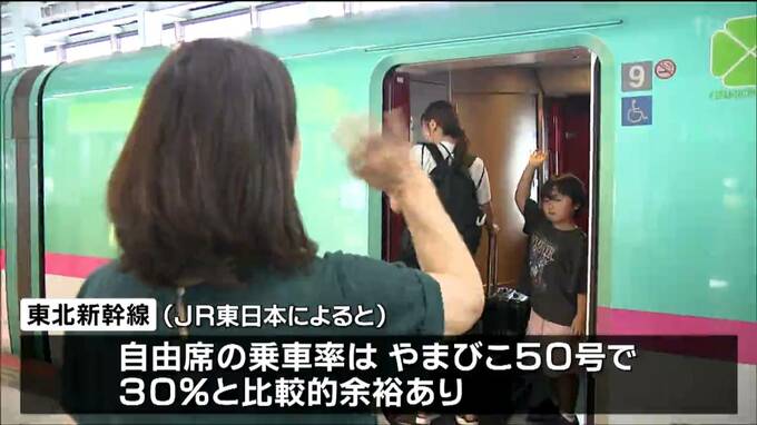 また、自由席の乗車率は午前7時1分仙台発のやまびこ50号で30%と比較的、余裕があるということです。