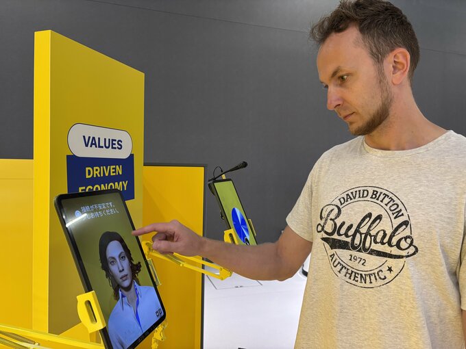 8月上旬、大阪・関西万博のコモンズC館に入るウクライナ・パビリオンの一角に、ウクライナ人女性のアバターが映し出されたタブレットが設置されていました。