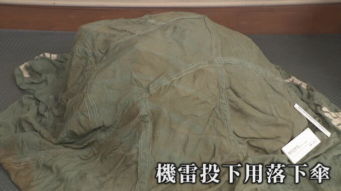 七尾市で開かれた平和展。戦時中の資料が並ぶ中、一角に展示されていたのはアメリカ軍が投下した機雷に取り付けられていたパラシュートです。