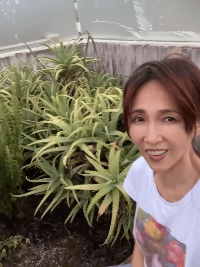 工藤さんは「私の大好きな場所」として、空に近い場所から自撮り動画を投稿。工藤さんの背後にはアロエがたくさん生えていて、その奥にいるアロエベラも紹介しています。