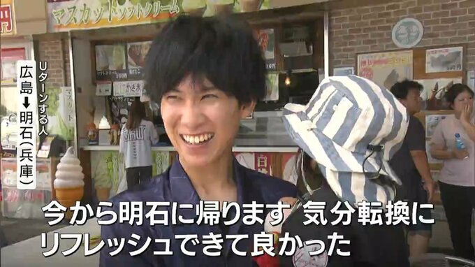 盆休みをふるさとや行楽地で過ごした人たちが、帰る途中に一休みをと立ち寄っていました。
