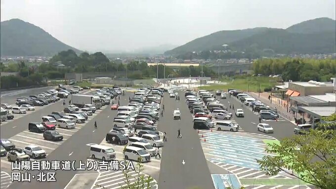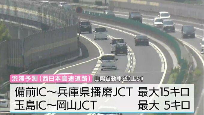 これから夜にかけて(16日)の渋滞予測は、山陽自動車道の上りが備前インターチェンジと兵庫県の播磨ジャンクションの間で最大15キロ、玉島インターチェンジと岡山ジャンクションの間で最大5キロなどとなっています。高松自動車道の上りは、渋滞の予想は発表されていません。
