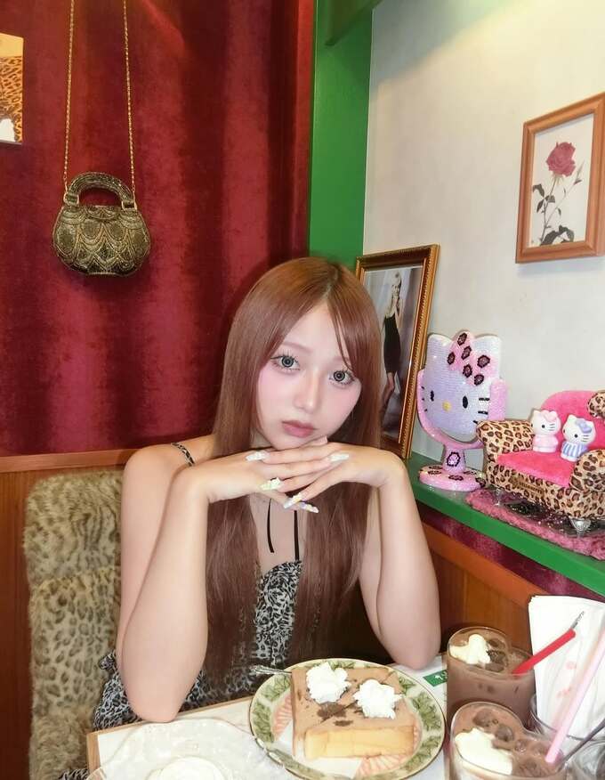 投稿された画像では、ワンピースを身にまとった希空さんが、キティちゃんの装飾品や花の写真が空間を彩る、喫茶店内にいる様子が見て取れます。
