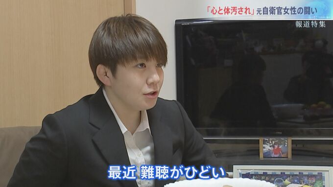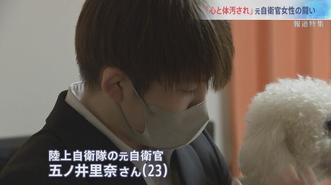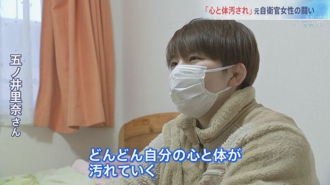 「男性隊員の先輩が自分のところにやってきて、首を決めて倒して、そのまま覆いかぶさってきて。腰を振ってくる、そういう行為をされて、振りながら(他の隊員の)笑いを取る。もうどんどん自分の心と体が汚されていく」