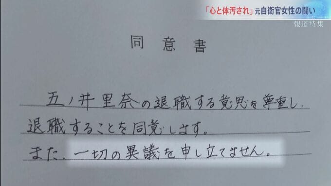 退職にあたり、自衛隊が母親に「一切の異議を申し立てない」とする同意書へのサインを求めた。