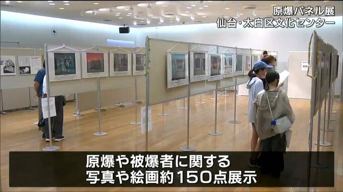 仙台市の太白区文化センターで16日から開かれているパネル展では、原爆や被爆者に関する写真や絵画およそ150点が展示されています。
