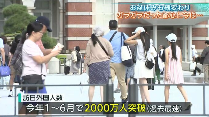 外国人観光客の増加で、お盆の都心はすっかり様変わり。直近の半年は初めて2000万人を突破しています。