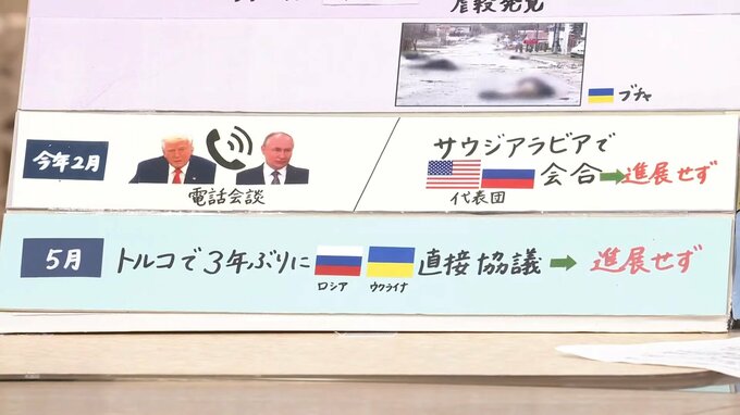 5月に、トルコで約3年ぶりにロシアとウクライナの2国間で直接協議が行われましたが、停戦に向けた進展はありませんでした。