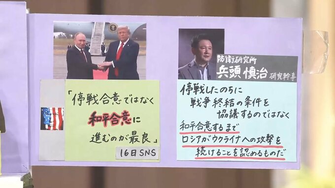 結局、停戦合意に至らなかった今回の首脳会談ですが、プーチン氏との会談後、トランプ氏はSNSに「停戦合意ではなく、和平合意に進むのが最良」(16日)と投稿しました。