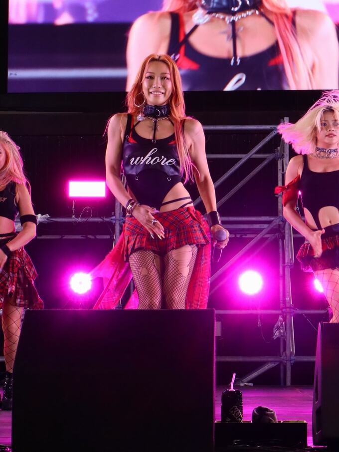 倖田さんは、ウエストが強調された黒のレザートップスに赤いチェックのミニスカート、さらにダメージ加工の網タイツという個性的でスタイリッシュな衣装を身にまとい、ステージで歌い踊る姿を捉えた写真を多数投稿しました。その表情や動きからは、ライブの熱気や会場の盛り上がりが伝わってきます。