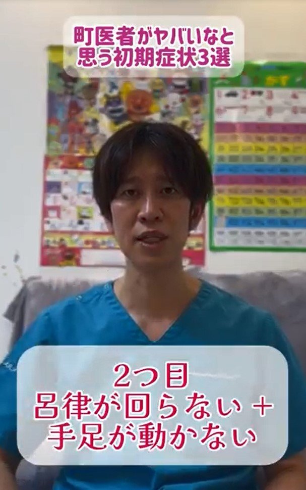 2つ目は「呂律が回らない、プラス手足が動かない」という症状です。これは脳梗塞を示唆する重要な初期症状だということです。