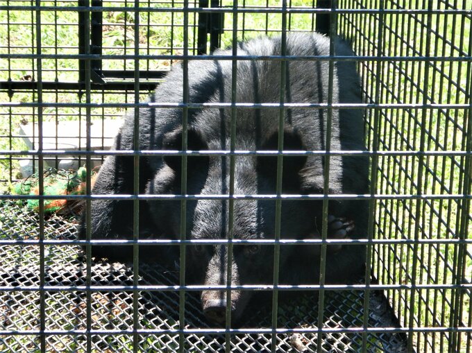 16日午前9時ごろにリンゴ園の所有者がクマがわなにかかっているのを確認して市に通報しました。