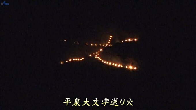 岩手県平泉町の盆の伝統行事大文字の送り火が16日、行われました。 大文字の送り火は毎年8月16日に先祖の供養をするために行われています。16日は中尊寺で法要が行われた後、本堂にある「不滅の法灯(ほうとう)…