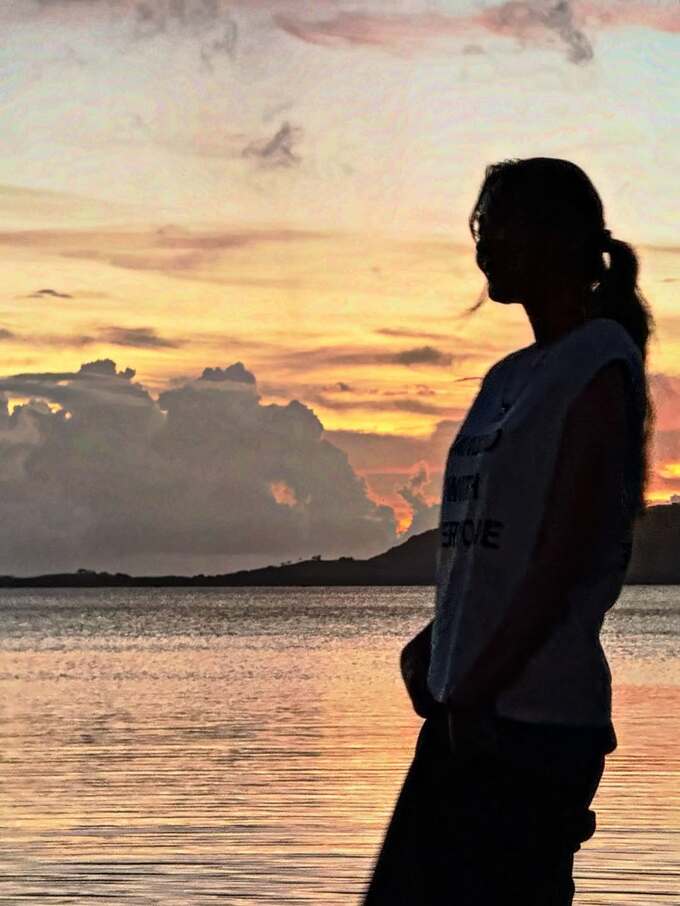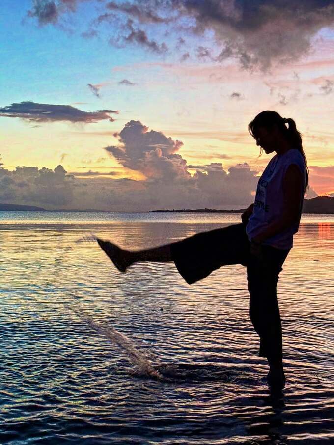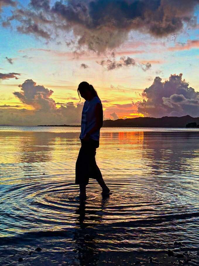 瀬戸さんは、「Photo by 息子」と書き出し、夕焼けに染まる景色の中、海で遊ぶ自身の写真を投稿。「この写真 めっちゃ好き」と、夕焼け空を背に足首まで海に浸かっている瀬戸さんのシルエットが非常に映えている、息子さんによる見事な写真の数々を紹介しました。