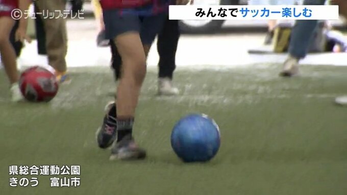 障がいのあるなしに関わらず、子どもたちがサッカーを楽しむことができるイベントが、16日、富山市で開かれました。