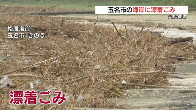 熊本県玉名市の海岸に、大雨で流出した大量のごみが漂着しています。玉名市の松原海岸は普段、ウィンドサーフィンやビーチバレーなどが楽しめる場所として多くの人が訪れます。しかし、大雨以降の浜辺には約400m…