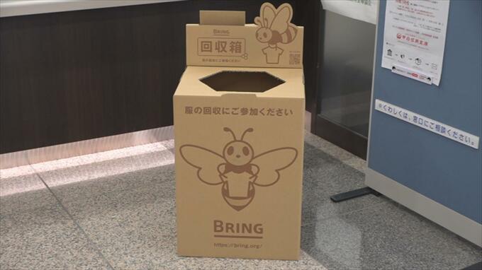 これは服のリサイクルを通じて循環型社会の実現を推進しようと、去年に続いて取り組むもので、甲府信金の20の店舗全てにクィーンビーズにちなんだ蜂のマークの古着回収ボックスが設置されました。
