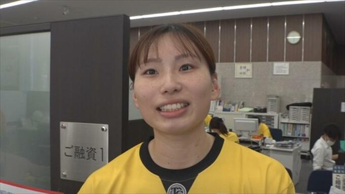 18日は甲府信金に勤務するクィーンビーズの片山菜々選手がリサイクルを呼びかけました。回収した古着は再資源化してオリジナルの応援Tシャツを作る予定です。