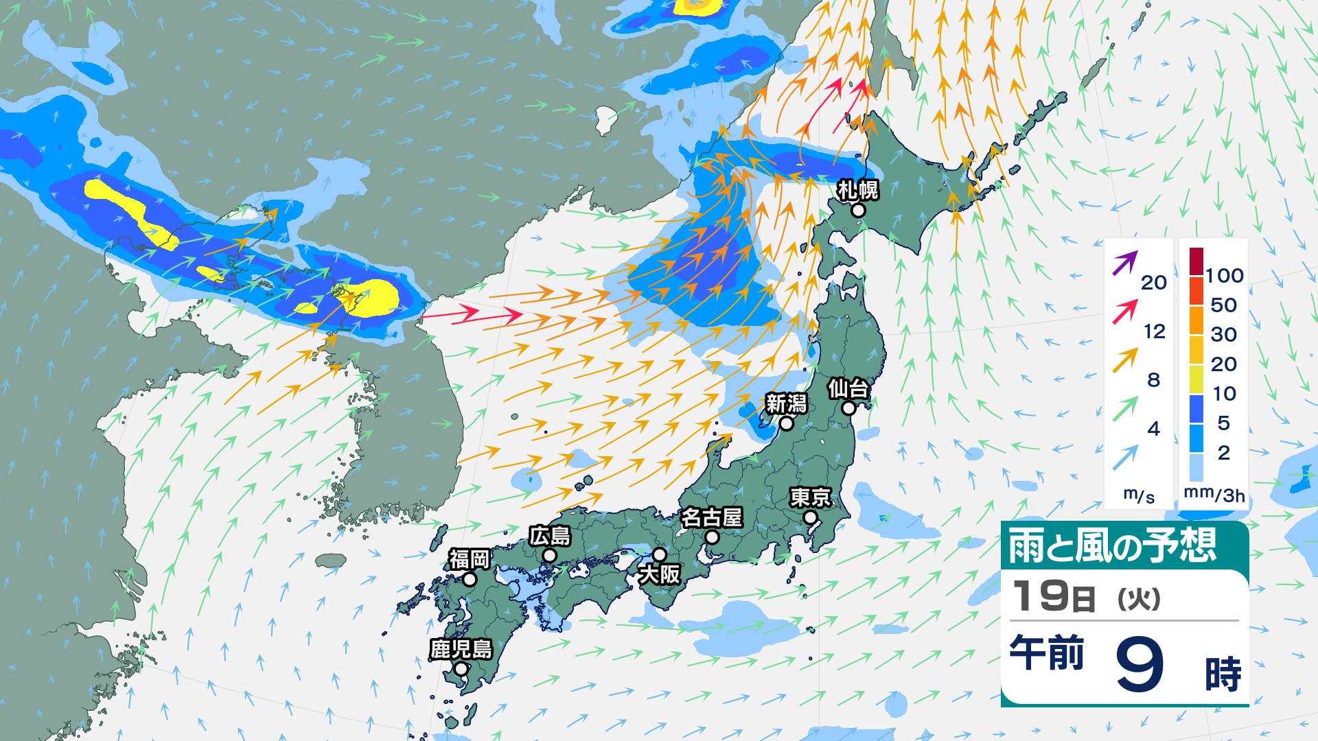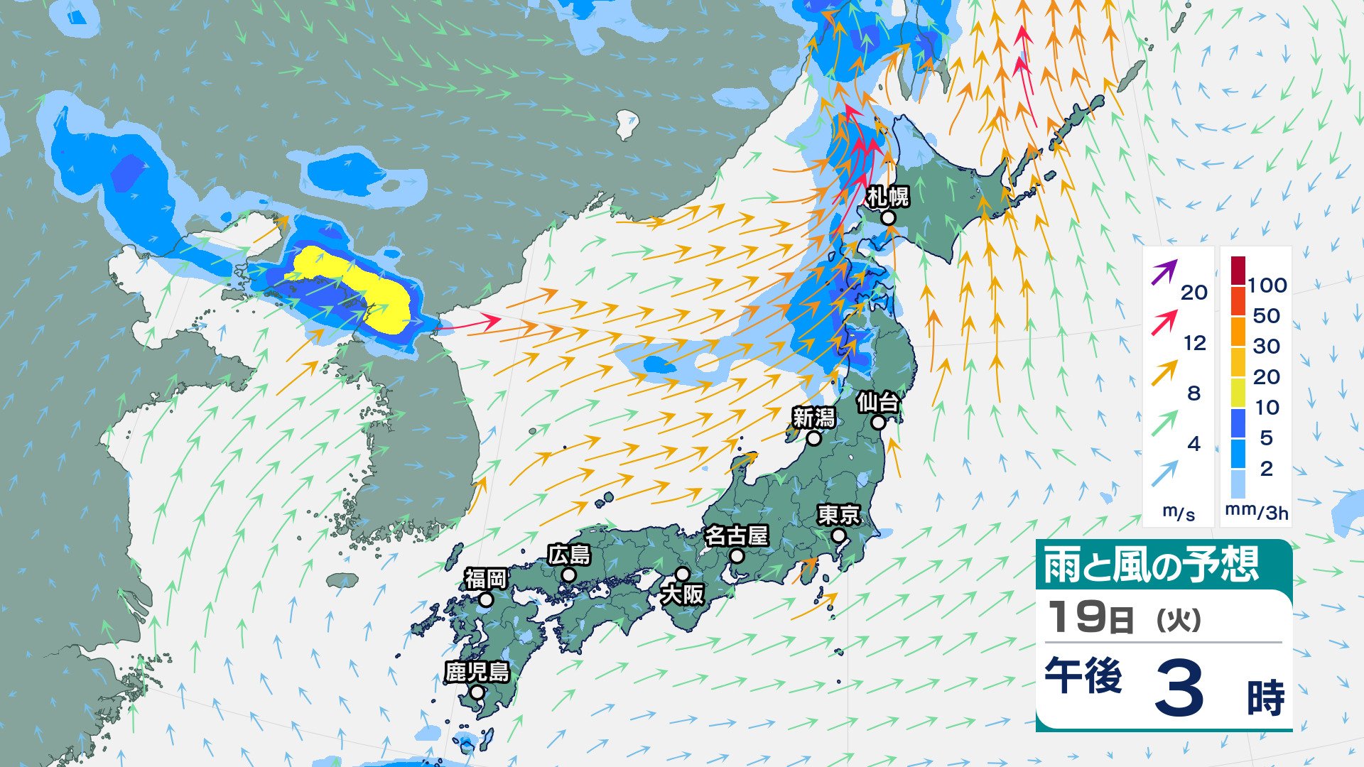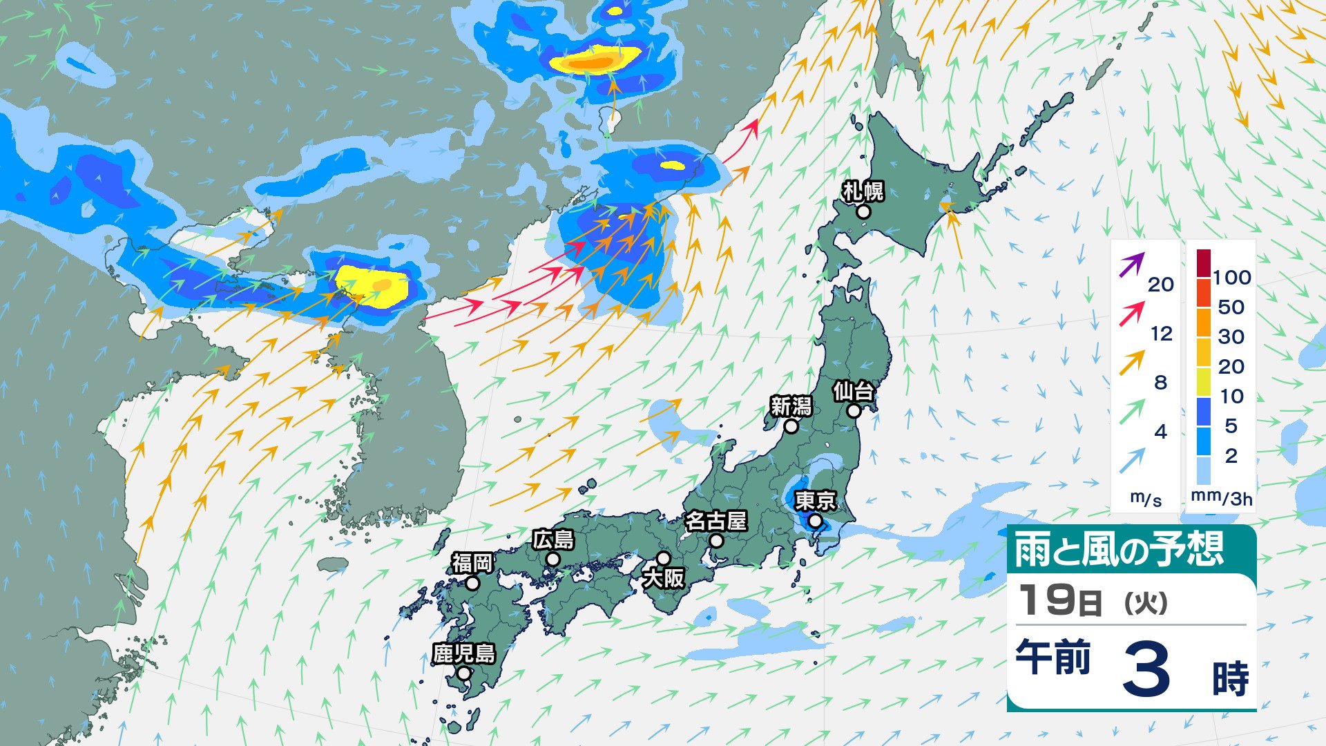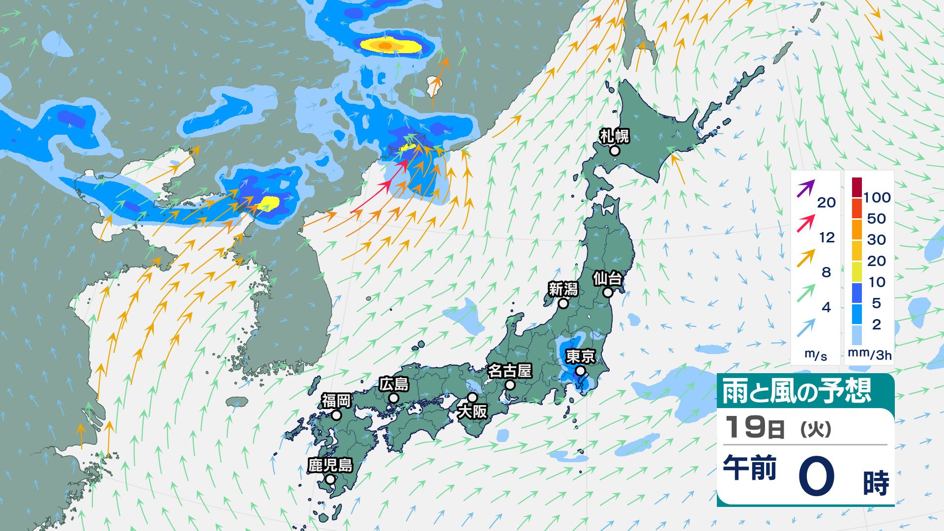 【大雨情報】関東甲信は、18日昼過ぎから夜遅くにかけて1時間50ミリの非常に激しい雨の降る所も…警報級の大雨となる可能性【雨と風のシミュレーション】 チューリップテレビ 2025年8月18日(月) 14:28 国内 天気 19日(火)の雨風シミュレーション
