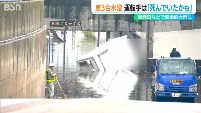 新潟県の下越地方を中心に18日朝、局地的に非常に激しい雨が降り、新発田市では道路が冠水して車3台が水没しました。水没した車に乗っていた男性が恐怖の瞬間を振り返りました。前線の影響で激しい雨に見舞われた…