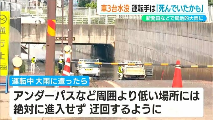 また、運転中に大雨に遭遇した際は、アンダーパスなど、周囲より低い場所には絶対に進入せず、迂回するように呼び掛けています。