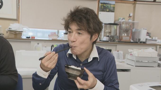 「つやがいいですね、粘りも感じます。いただきます。ほどよい硬さで、粒がたっていて、噛むともっちりしていて、おいしいです」