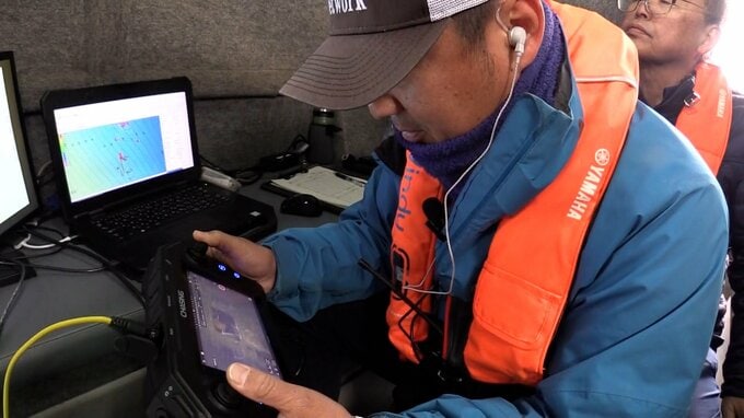 早速、水中ドローンを投入し、リモコン操作で海底に向かうと…