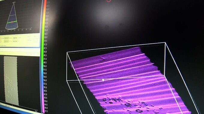 「音波探査で反応があった海底にいったい何があるのか。海の中を自由に動き回ることができる水中ドローンで撮影します」