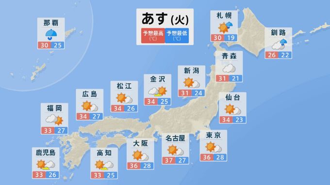 19日は、西日本から東日本の広い範囲で高気圧が張り出し晴れるところが多いでしょう。前線の影響で北海道では雨が降るでしょう。