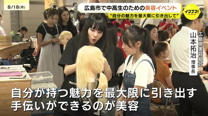 このイベントは、学生のうちから美容に触れてもらおうと、広島県美容業生活衛生同業組合が主催したものです。