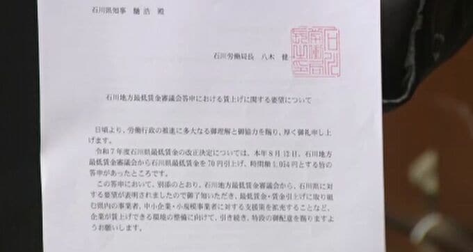 県の最低賃金審議会と石川労働局は県内企業が賃上げに対応していくための支援策の拡充を県に要請しました。