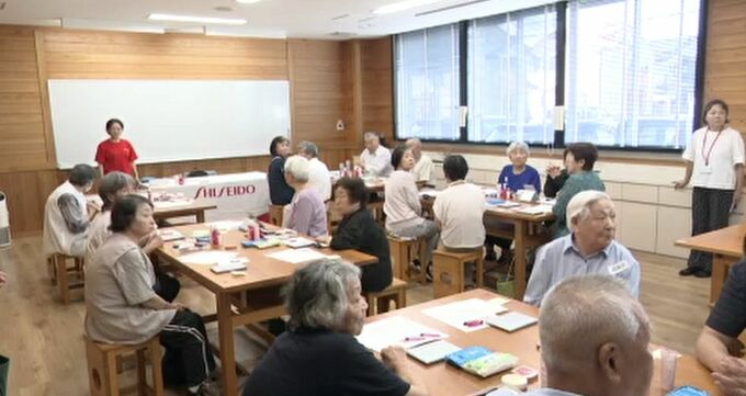 「いきいきセミナー」と銘打ったこのイベントは年齢を重ねるにつれ身体機能が衰える「フレイル」をメイクを通じて予防してもらうと資生堂ジャパンと県社会福祉協議会が連携し開きました。